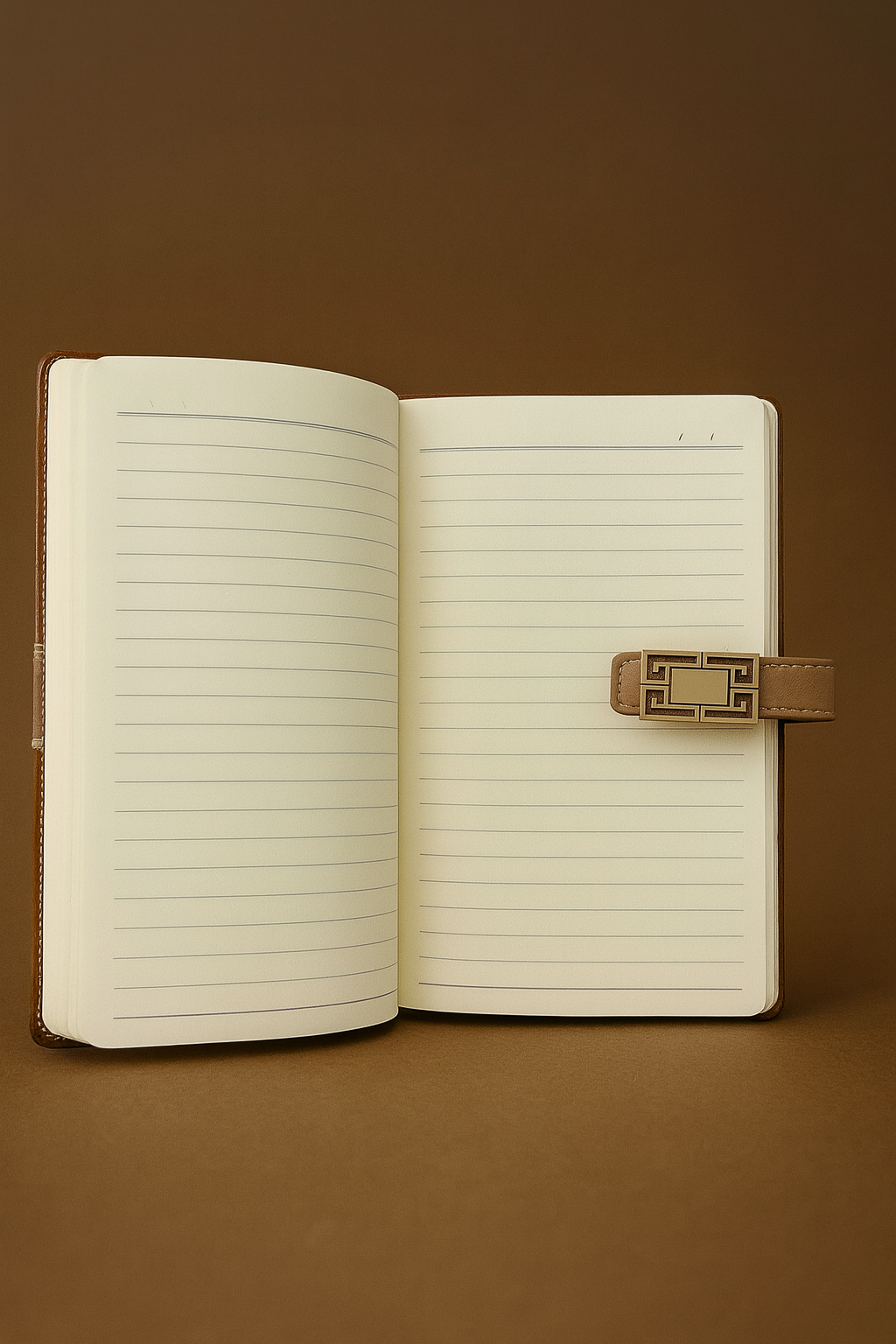 Tarihsiz Ajanda Defter Taba Renk, 21 cm x 14.5 cm boyutundadır. Kaliteli termo deri malzemeden üretilmiş olup, defter içi çizgili tasarıma sahiptir. Defter kapağında mıknatıs bulunan açma-kapama özelliği vardır ve üzerine metal bir işleme modeli eklenmiştir. Defterde, kullanıcıya kolaylık sağlayan ayırıcı ip yer almaktadır. Defter 106 yapraktan oluşur ve A5 boyutundadır.
